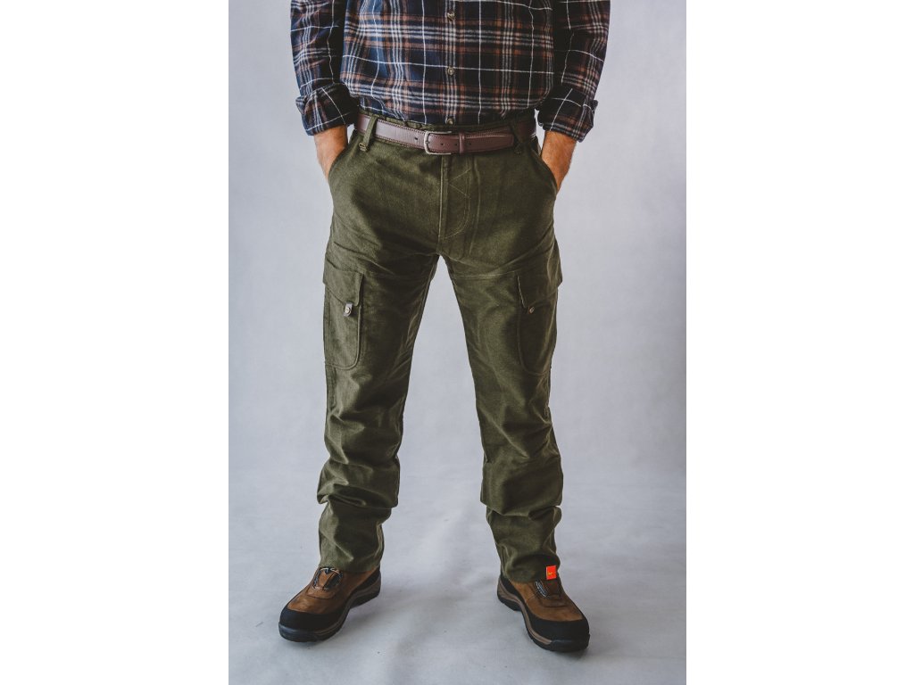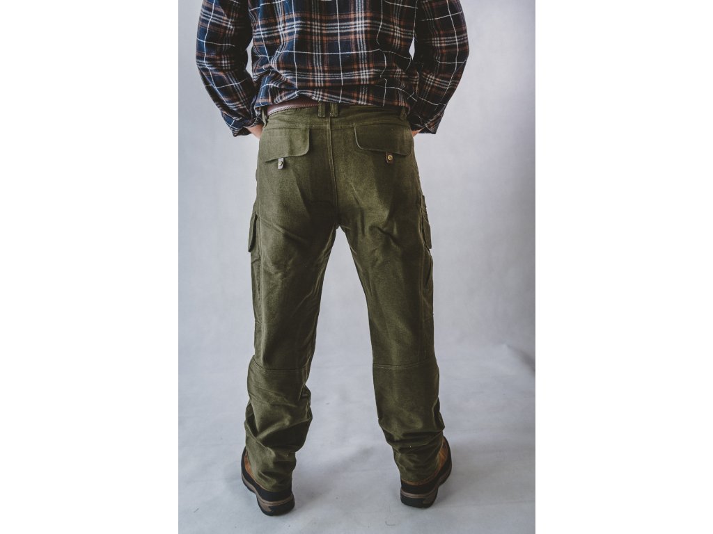 Velká postranní kapsa, zapuštěná kapsa na nože, zadní kapsa připevněná knoflíkem. Exklusivní kombinace funkčnosti a jedinečného stylu.