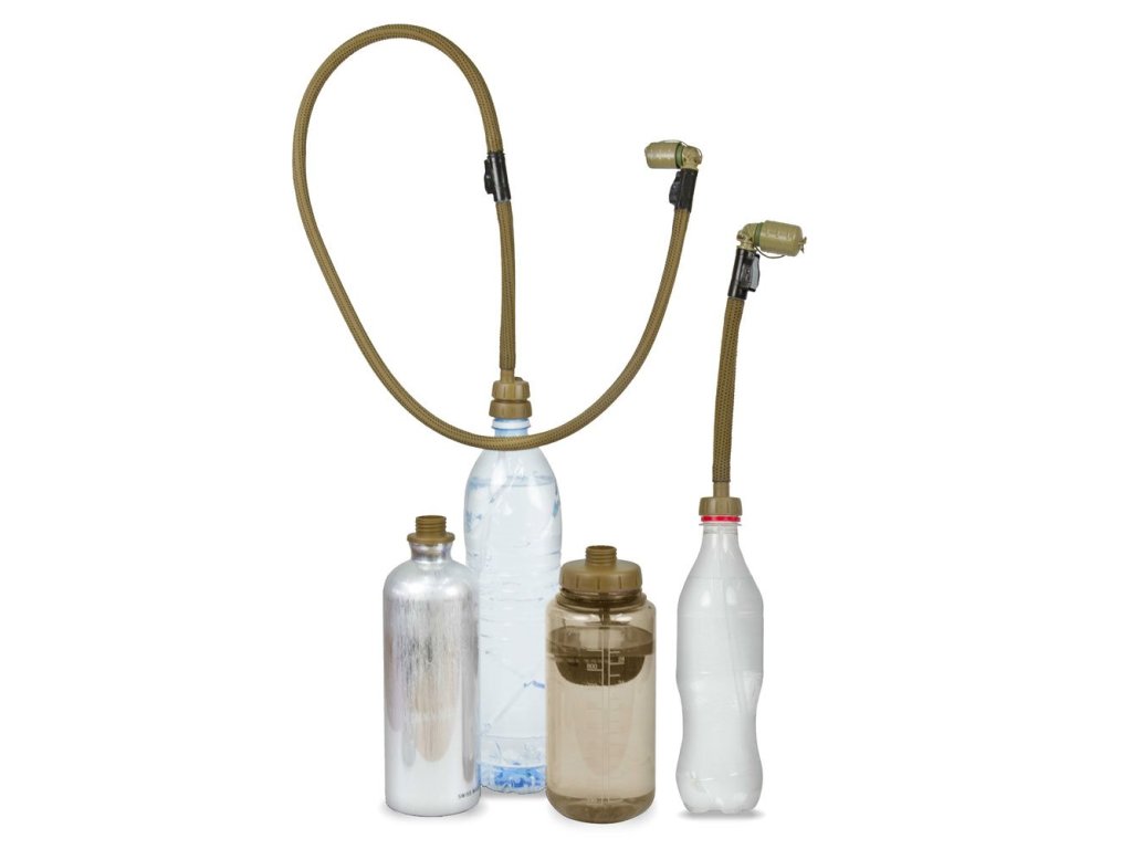 Hadice a přechodky, díky kterým máte možnost připojení k většině obvyklých lahví na vodu - PET láhev, Nalgene, Sigg, Evian.