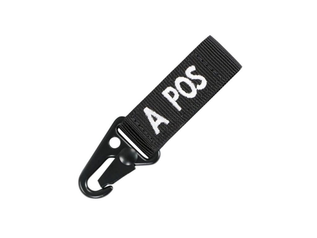 Přívěšek na klíče s označením krevní skupiny a RH faktoru nositele. Lze nosit na opasku, PALS, klíčích či spoustě jiných věcí. Připevnění pomocí kovové "krokodýlové" spony či provlečením. Šířka průvleku 5 cm.
