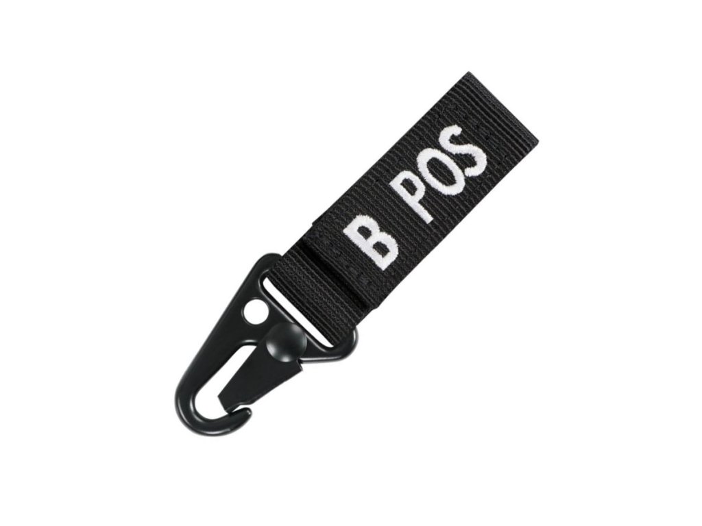 Přívěšek na klíče s označením krevní skupiny a RH faktoru nositele. Lze nosit na opasku, PALS, klíčích či spoustě jiných věcí. Připevnění pomocí kovové "krokodýlové" spony či provlečením. Šířka průvleku 5 cm.