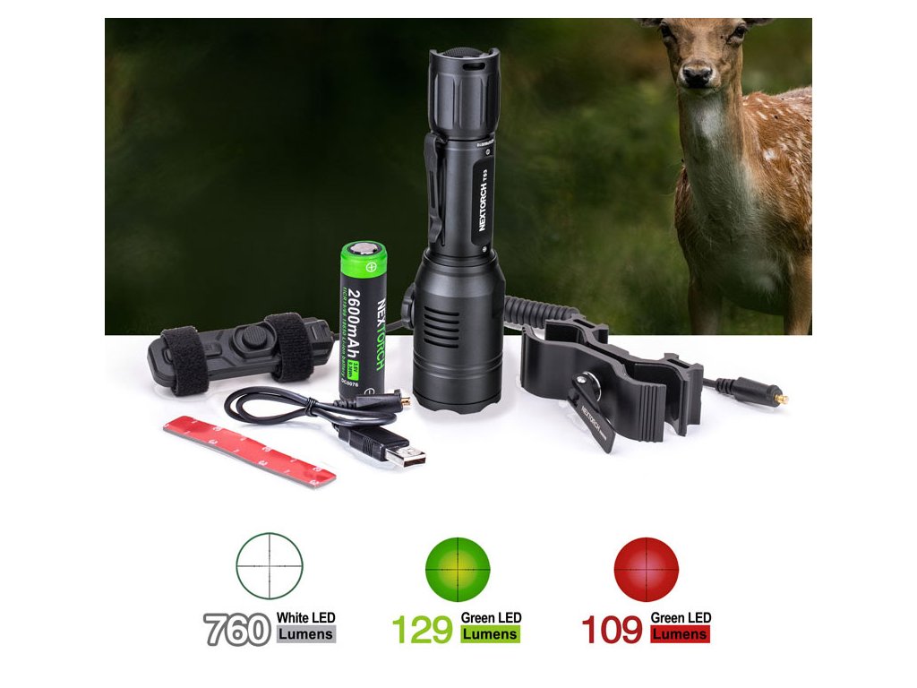 Sada T53 obsahuje taktickou svítilnu T53, držák RM85S, dálkový tlakový spínač TS41-L a nabíjecí Li-ion baterii 18650. Spínač je multifunkční a umožňuje přepnout na 2 režimy jasu, režim stroboskopu a S.O.S. režim jednou rukou. Extra novinkou je možnost přepínání mezi bílým, zeleným a červeným světlem. Zelené světlo se v noci jeví jasnější a mnoho lovců ho používá, aby méně plašili zvěř v lese. Naopak vetšina zvířat hůře vnímá červené barevné spektrum, což dává lovci výhodu.