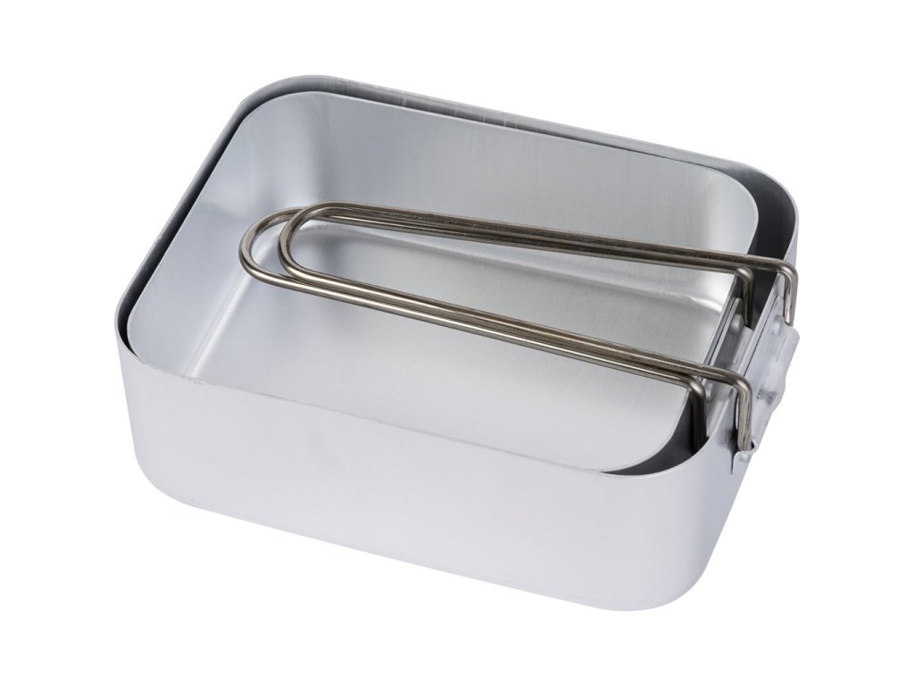 Dvoudílný hliníkový jídelní set se sklopnými uchy.