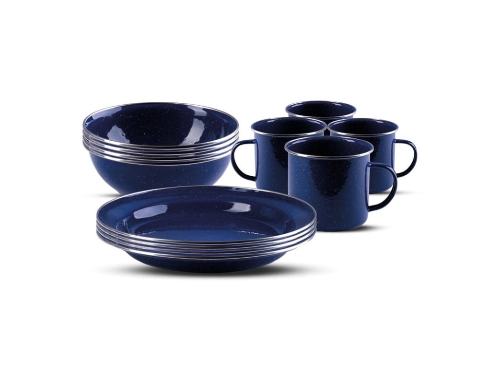 Jídelní sestava ideální pro kempování, cestování a outdoorové aktivity. Smaltované ohně vzdorné.