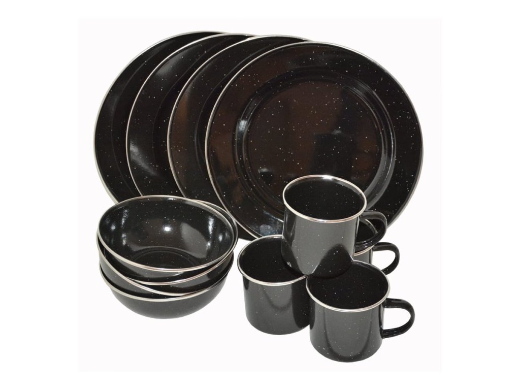 Jídelní sestava ideální pro kempování, cestování a outdoorové aktivity. Smaltované ohnivzdorné.