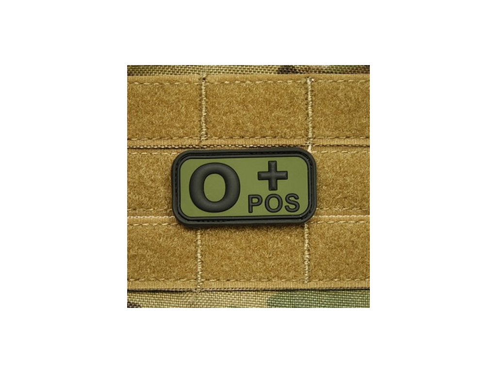 Plastová nášivka s označením krevní skupiny. Rozměr cca 5 x 2,5 cm, na rubu se suchým zipem.