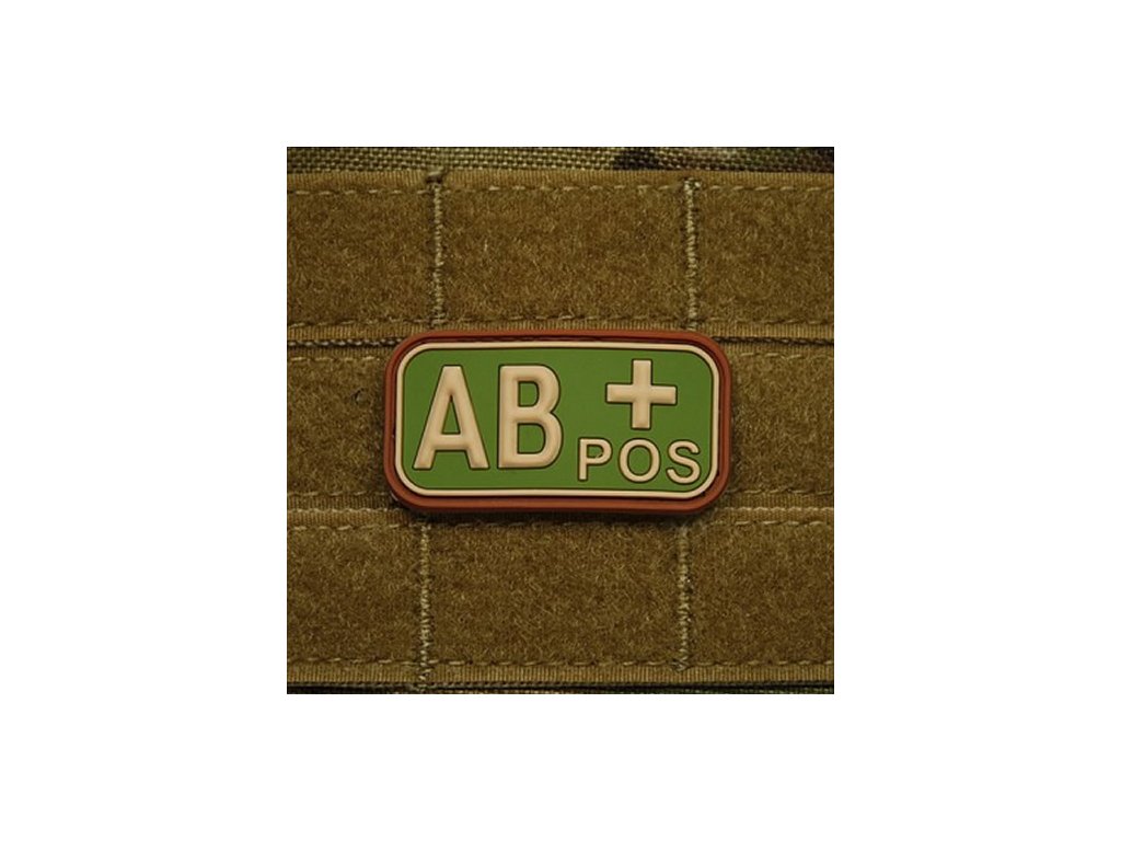 Plastová nášivka s označením krevní skupiny. Rozměr cca 5 x 2,5 cm, na rubu se suchým zipem.