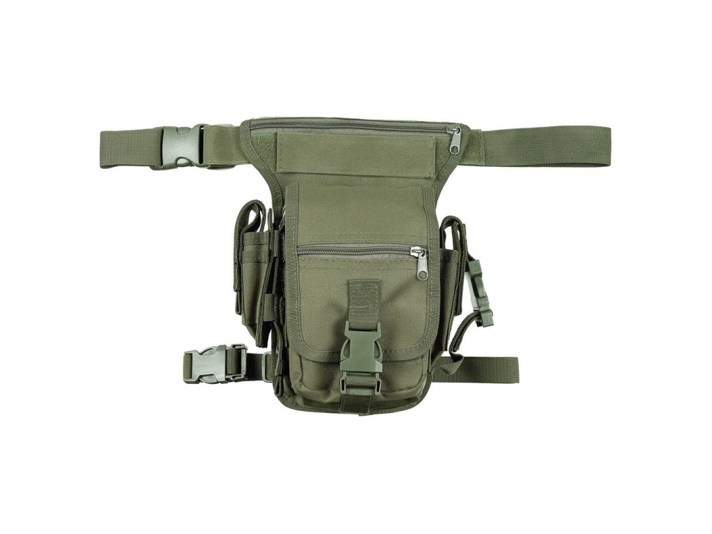 Praktická taška s opaskem 1000D.Dvě boční kapsy.Kapsa na zip se zámkem, např. pro uložení peněz.Uchycení nastavitelným opaskem. Pásek na nohu. Materiál: 100% polyester.