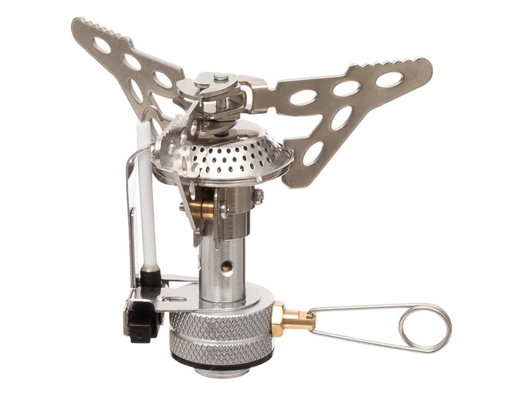 Kompaktní plynový vařič pro šroubovací PB kartuše s piezo zapalováním . Výkon 1,8 kW, hmotnost 125 g. Rozměry složeného hořáku cca 70 x 65 mm.